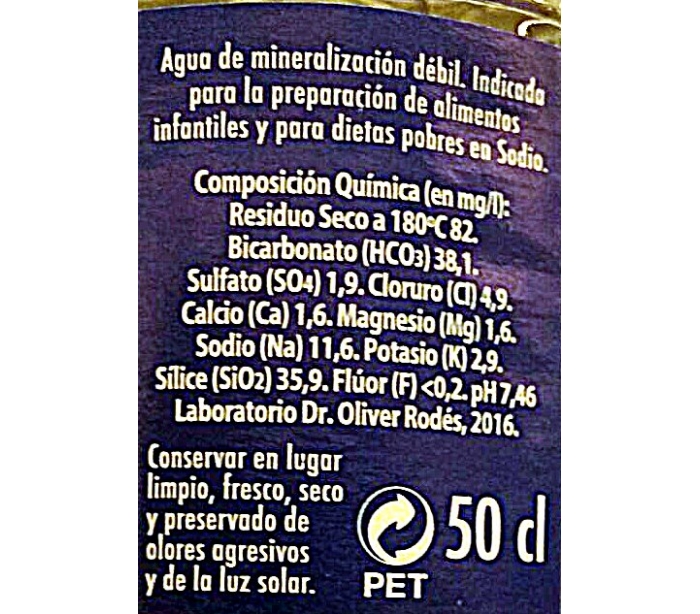 AGUA MINERAL NATURAL AGUAS DE LA PALMA 0.50 L.