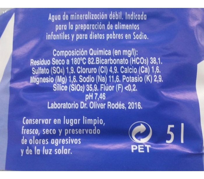 AGUA MINERAL NATURAL AGUAS DE LA PALMA 5 L.