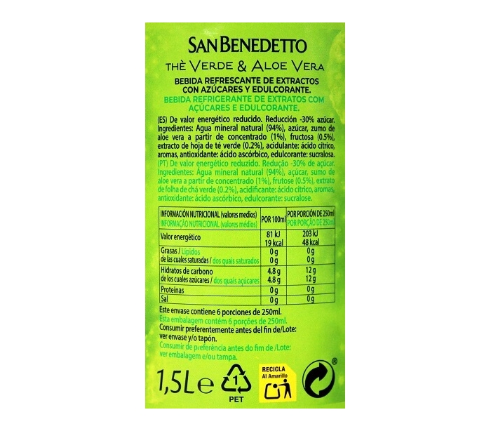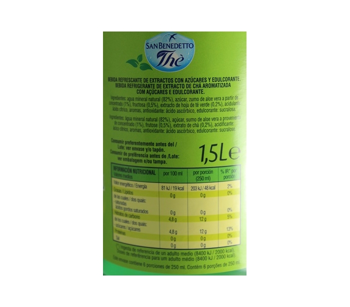 BEBIDA DE TE VERDE Y ALOE VERA SAN BENEDETTO 1,5 L.