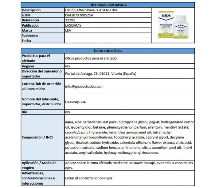 AFTER SHAVE LOCIÓN LEA SENSITIVE 125 ML.