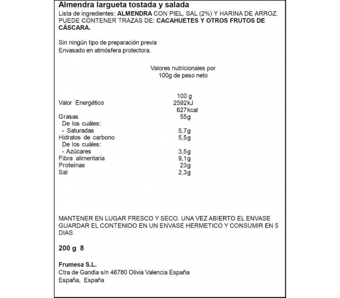 ALMENDRA TOSTADA CON SAL ALTEZA 200 GR.