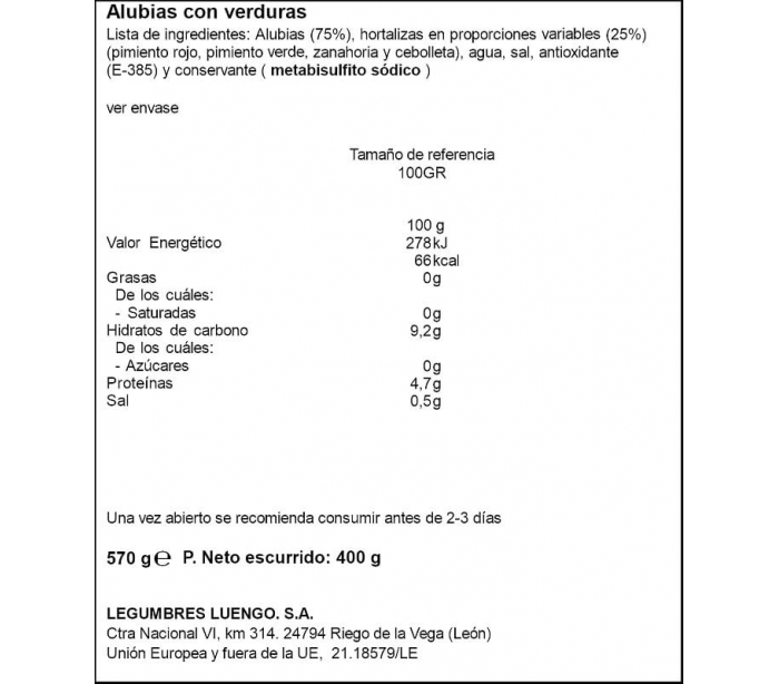 ALUBIAS CON VERDURAS LUENGO 400 GR.FRASCO