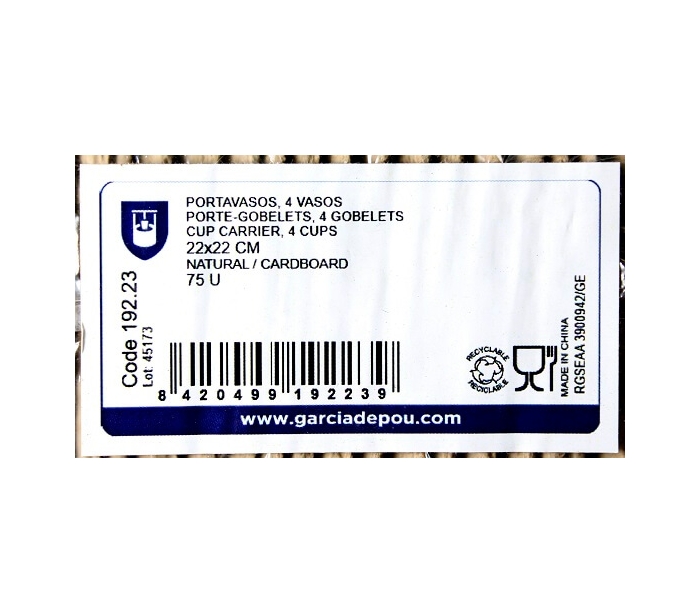 PORTAVASOS CARTON 22X22 CM. . 75 UN.