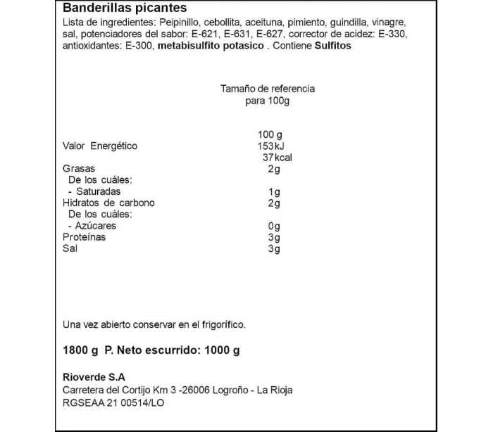 BANDERILLA PICANTE RIOVERDE 1,900 KG.