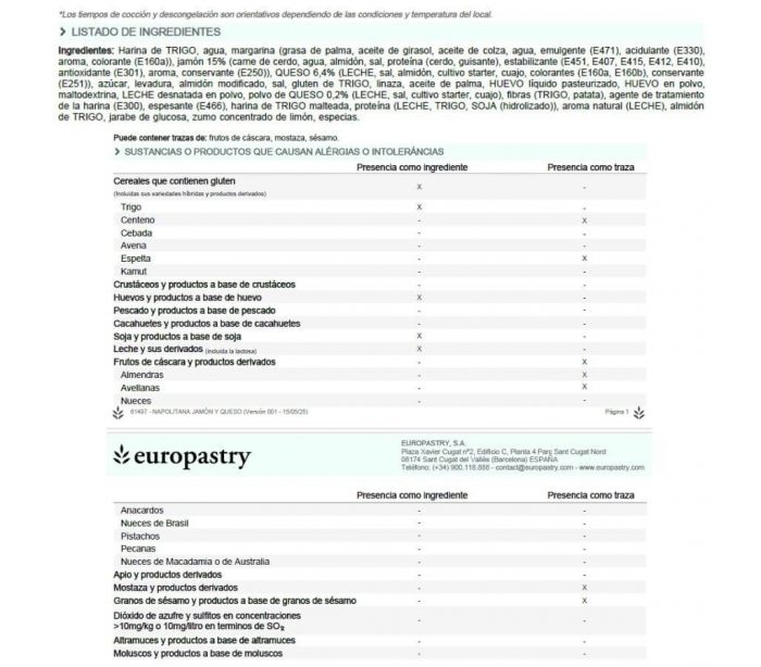 NAPOLITANA JAMON Y QUESO . 90 GR.