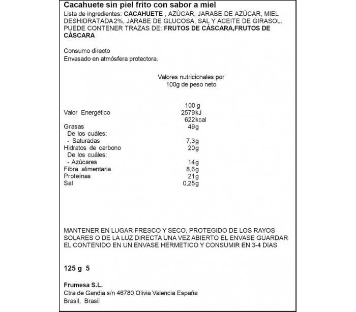 CACAHUETE FRITO CON MIEL ALTEZA 125 GR.