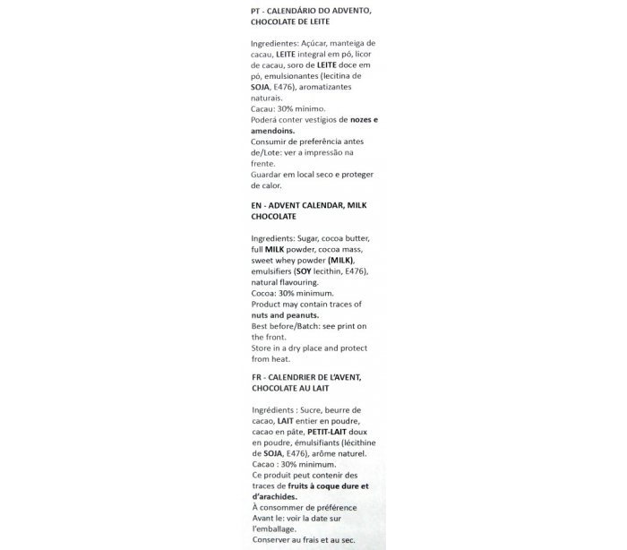 CALENDARIO ADVIENTO CHOCOLATE CON LECHE ALTEZA 75 GR.