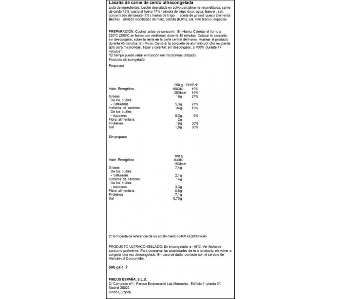 LASAÑA BOLOÑESA LA COCINERA 500 GR.