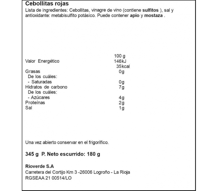 CEBOLLITAS AGRIDULCE RIOVERDE 180 GRS.
