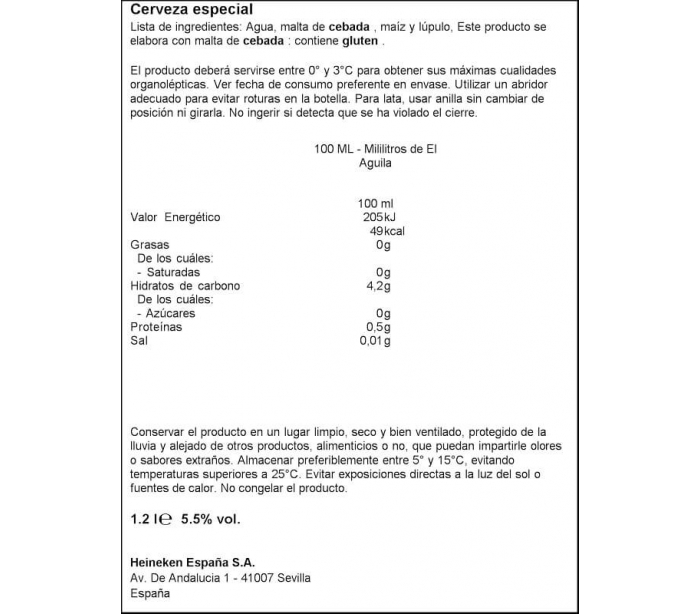 CERVEZA ESPECIAL EL AGUILA PACK 6X20CL.BOT