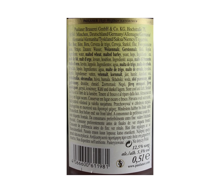 CERVEZA NATURTRUB PAULANER 50 CL.BOT