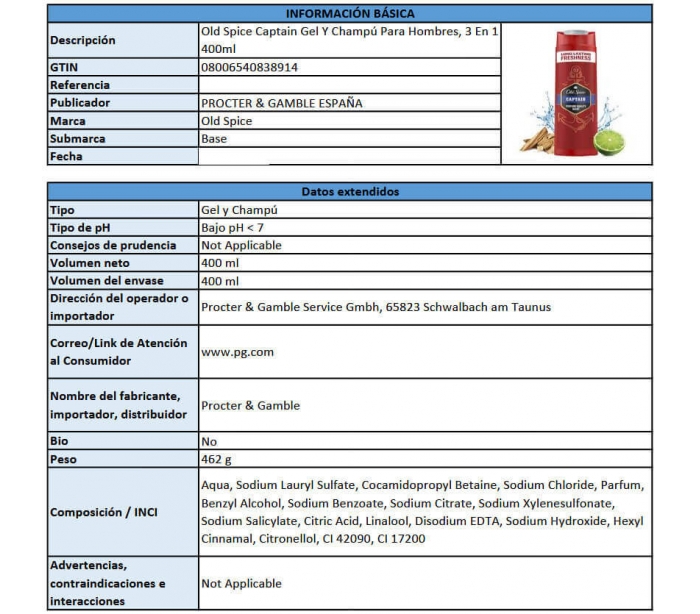 CHAMPU 3EN1 CAPTAIN OLD SPICE 400 ML.
