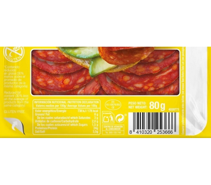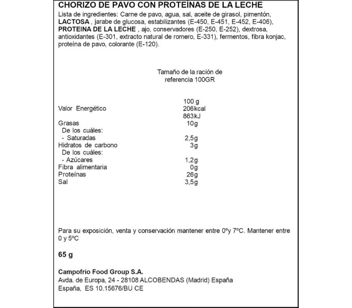 CHORIZO PAVO PAVOFRIO 65 GR.LONCHAS