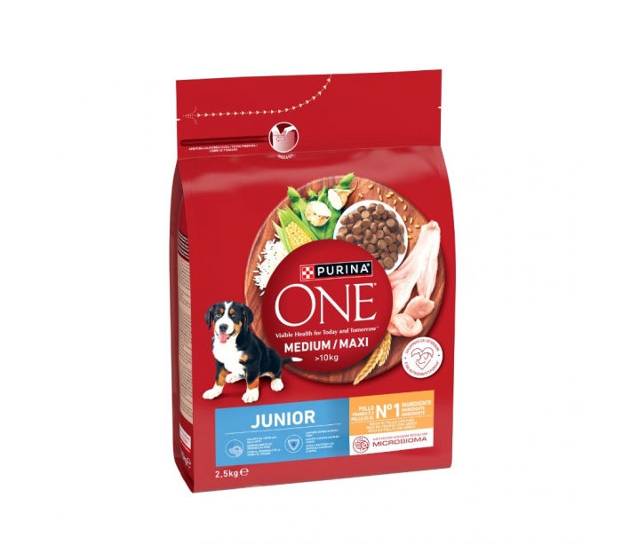 COMIDA PERRO JUNIOR POLLO CON ARROZ PURINA ONE 2,5 KG.