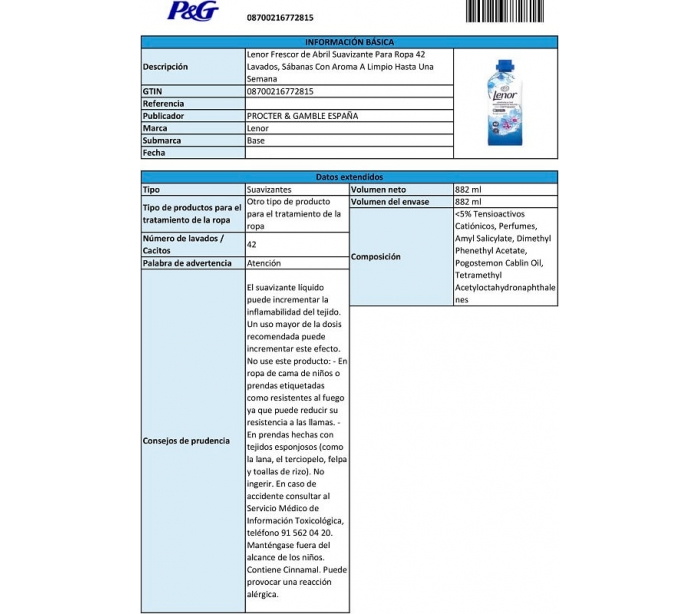 SUAVIZANTE CONCENTRADO FRESCOR DE ABRIL LENOR 42 DOSIS.