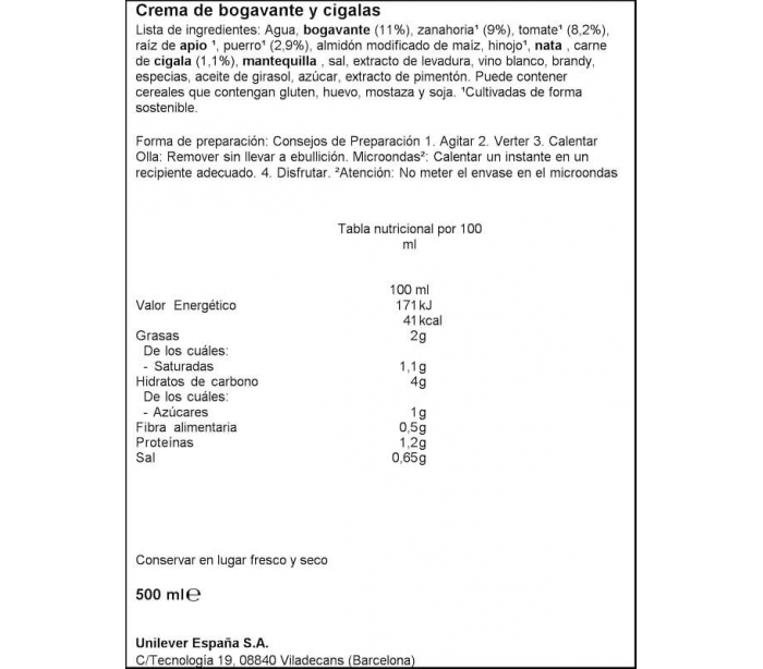 CREMA DE BOGAVANTE Y CIGALAS KNORR 500 ML.