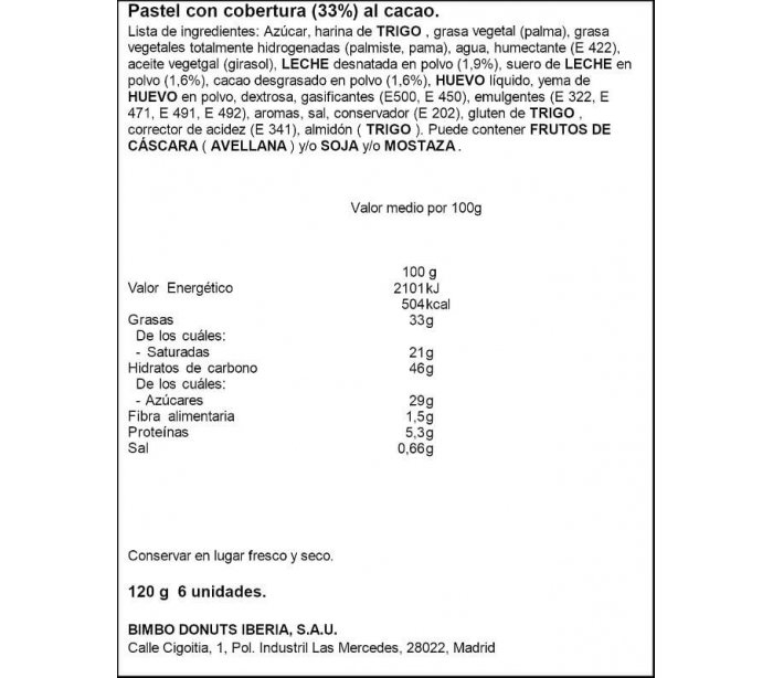 DONETTES CHOCOLECHE BIMBO 120 GR.6 UN.