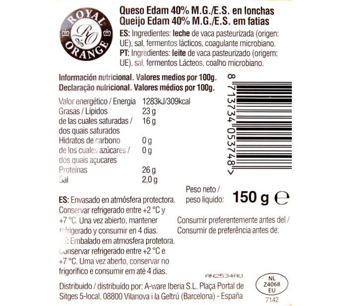 QUEDO EDAM ROYAL ORANGE 150 GR.
