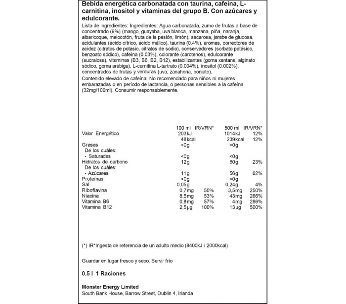 BEBIDA ENERGETICA MANGO LOCO, LATA MONSTER 500 ML.