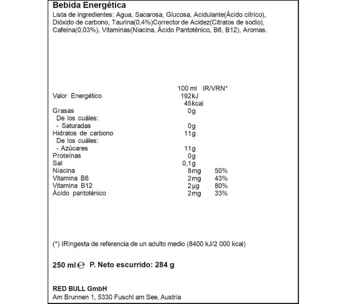BEBIDA ENERGÉTICA MELOCOTÓN BLANCO REDBULL LT 250ML.