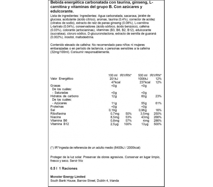 BEBIDA ENERGETICA ENERGÉTICO GREEN MONSTER 500 ML.