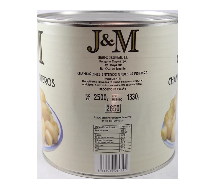 CHAMPIÑONES ENTERO JV 1.330 GR.