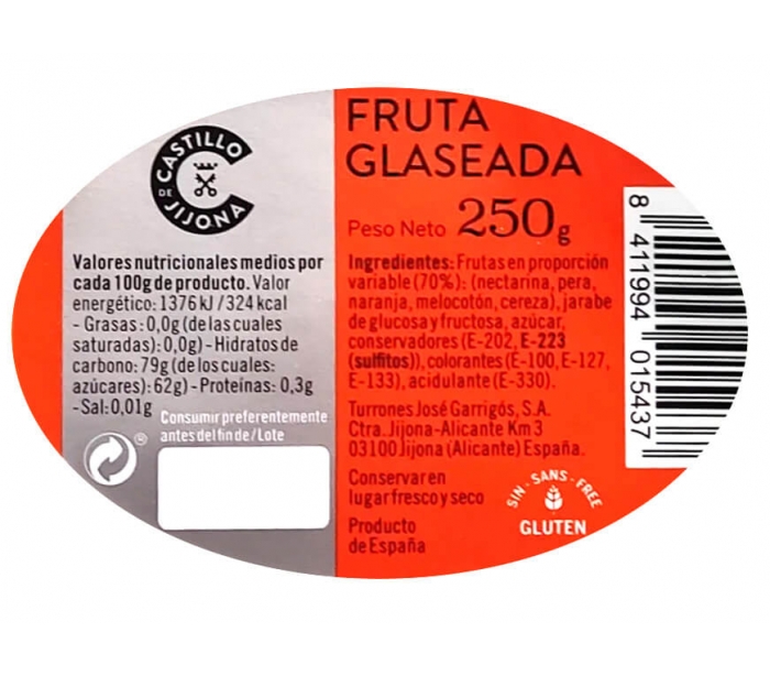 FRUTA GLASEADA CASTILLO DE JIJONA 250 GR.
