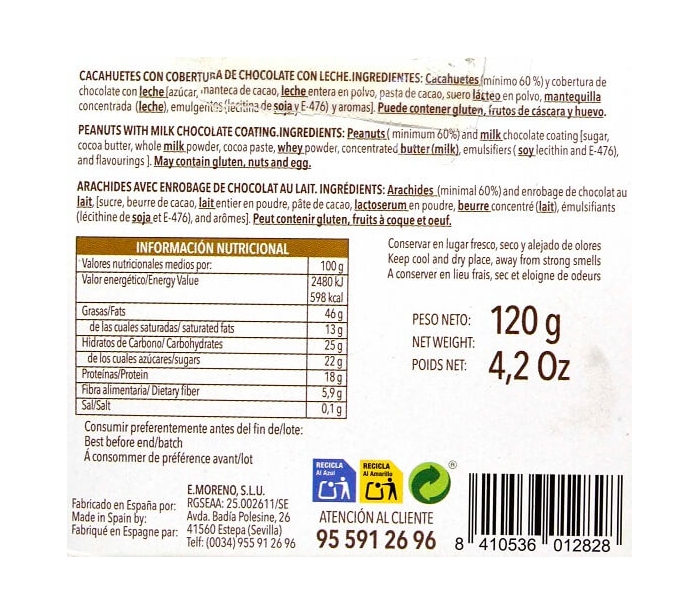 ROCAS DE CACAHUETE Y CHOCOLATE E.MORENO 120 GR.