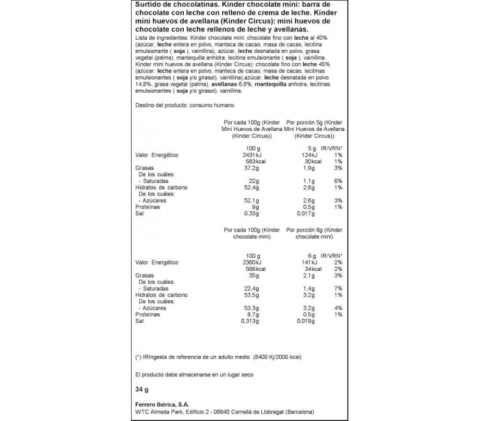 FIGURAS NAVIDAD CHOCOLATE KINDER 34 GR.