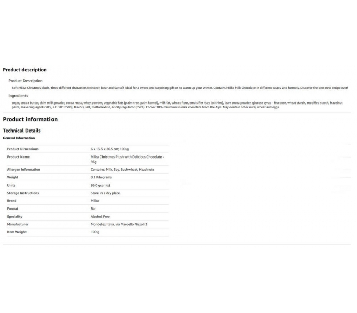 PELUCHE CHOCO MIX MILKA 96 GR.