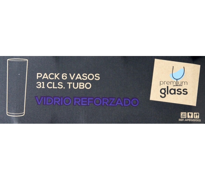 VASOS TUBO 31 CL ELITEGLASS PACK 6 UN.
