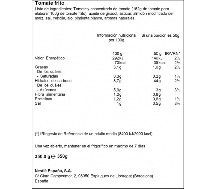 TOMATE FRITO 100% NATURAL SOLIS 350 GR.BRIK