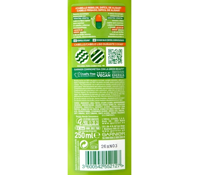 ACONDICIONADOR LISO Y BRILLO FRUCTIS 250 ML.