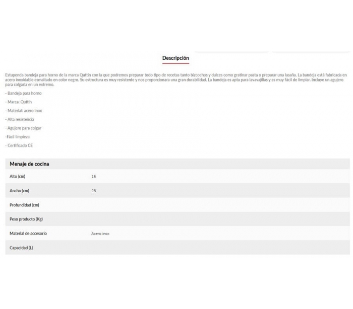MOLDE HORNO RECTANGULAR QUTTIN 28 X 15 CM