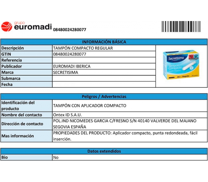 TAMPON REGULAR SECRETISIMA 20 UN.
