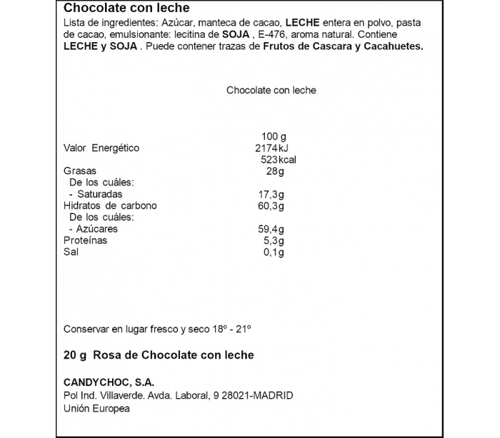 GOLOSINAS ROSA CHOCO CON LECHE MIGUELAÑEZ 20 GR.