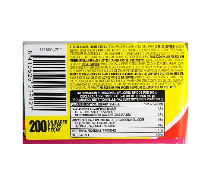 GOLOSINAS REGALIZ RELLENITO 4 COLORES FINI 200 UN.