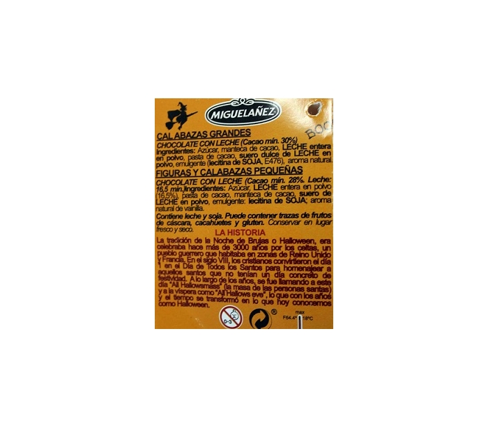 CALABAZA HALLOWEEN CHOCOLATE MIGUELAÑEZ 100 GRS.