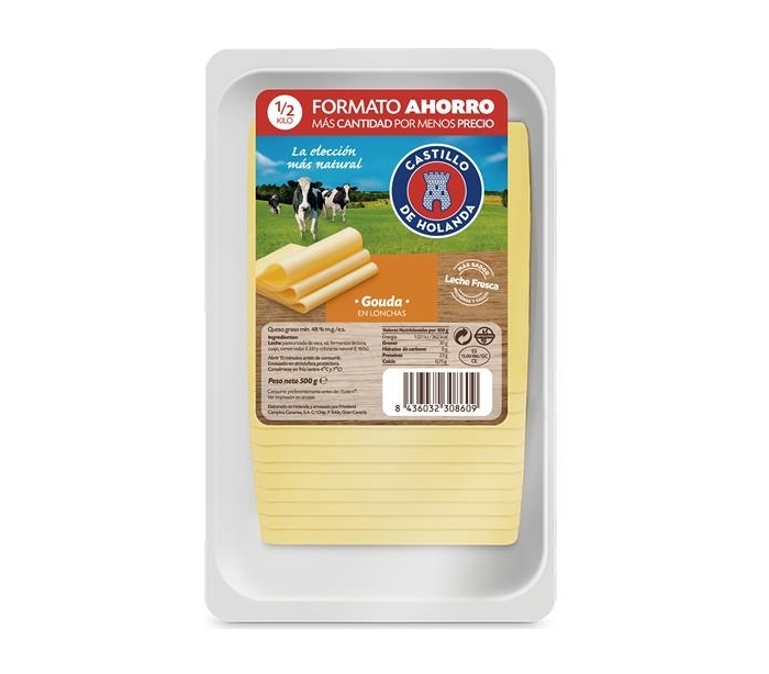 QUESO GOUDA AHORRO EL CASTILLO 500 GR.LONCHAS