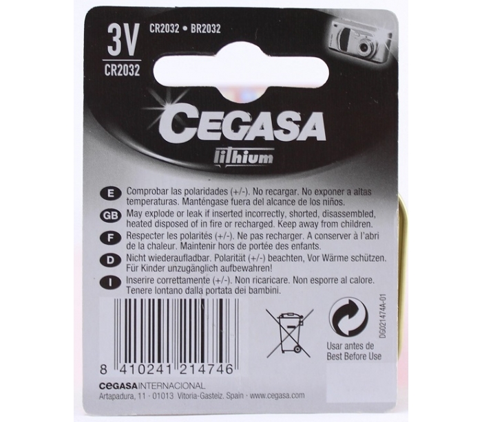 PILAS LITIO CR2032 CEGASA 1 UD.
