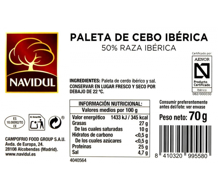 PALETA CEBO IBÉRICA NAVIDUL 70 GR.
