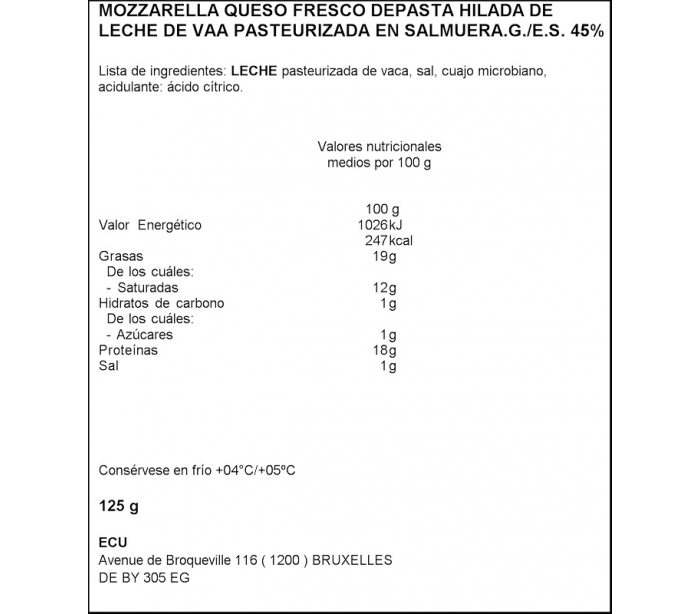 QUESO MOZZARELLA FRESCA TECALI 125 GR.