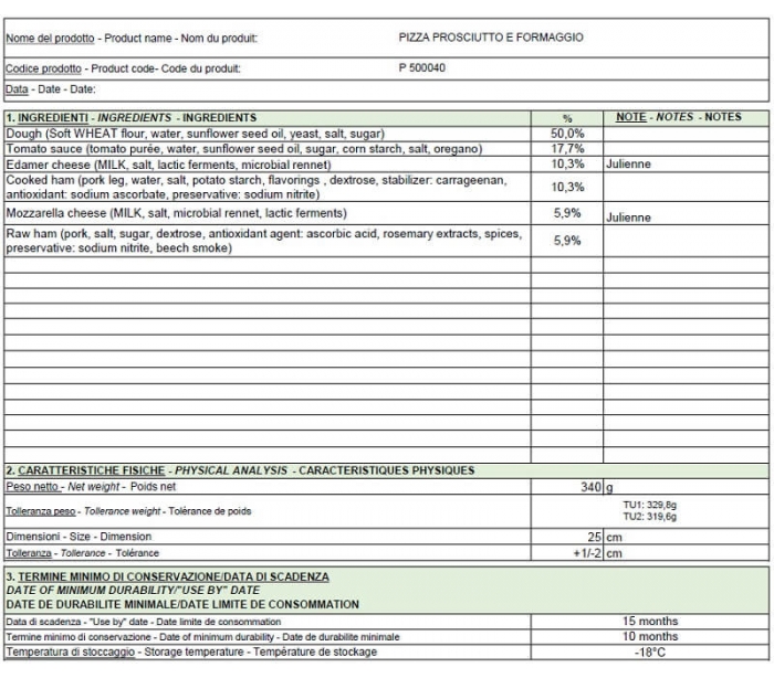 PIZZA PROSCIUTTO TRATTORIA 340 GR.