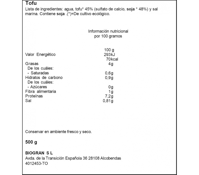 TOFU BIO ECOCESTA 500 GR.