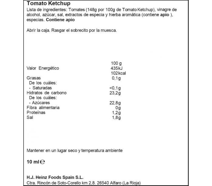 TOMATE KETCHUP MONODOSIS HEINZ 200 UNX10 ML.