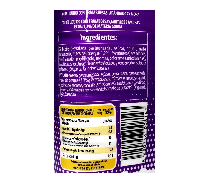 YOGUR LIQUIDO CON FRUTOS DEL BOSQUE REINA 1,5 LITROS