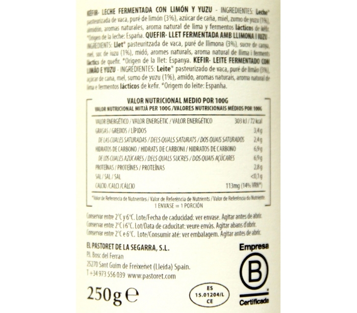 KEFIR LIQUIDO LIMON Y YUZU PASTORET 250 GR.