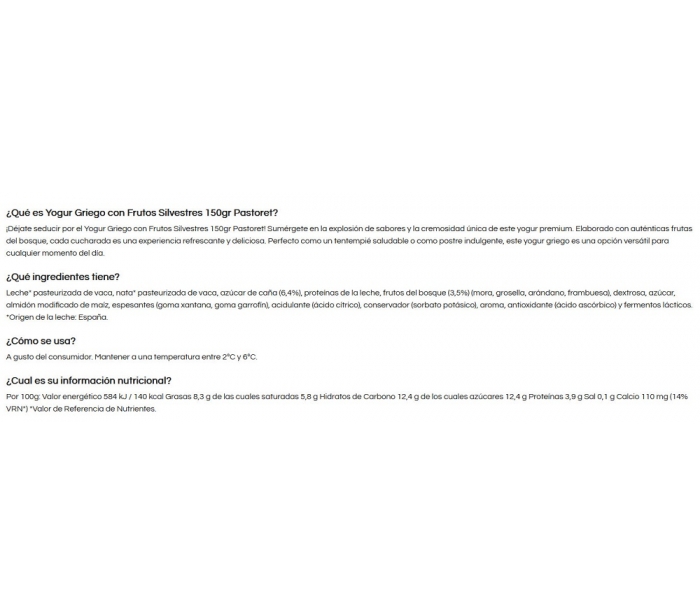 YOGUR GRIEGO FRUTOS SILVESTRES PASTORET 150 GR.