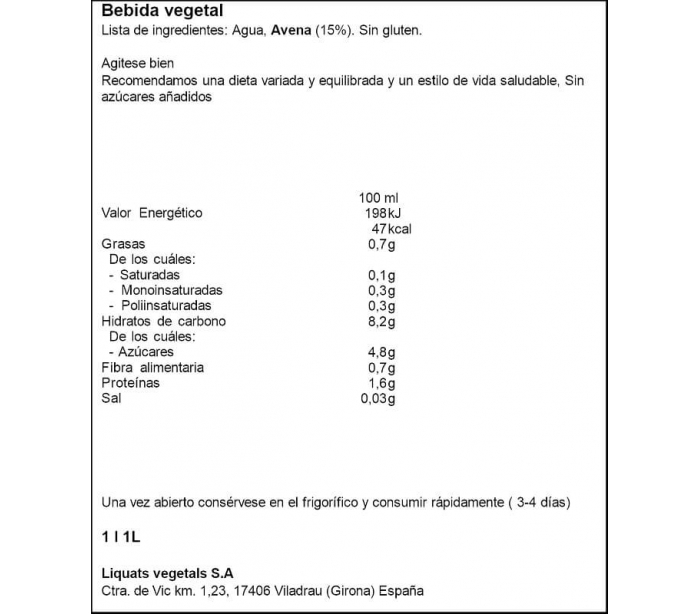 GenéricoBEBIDA DE AVENA