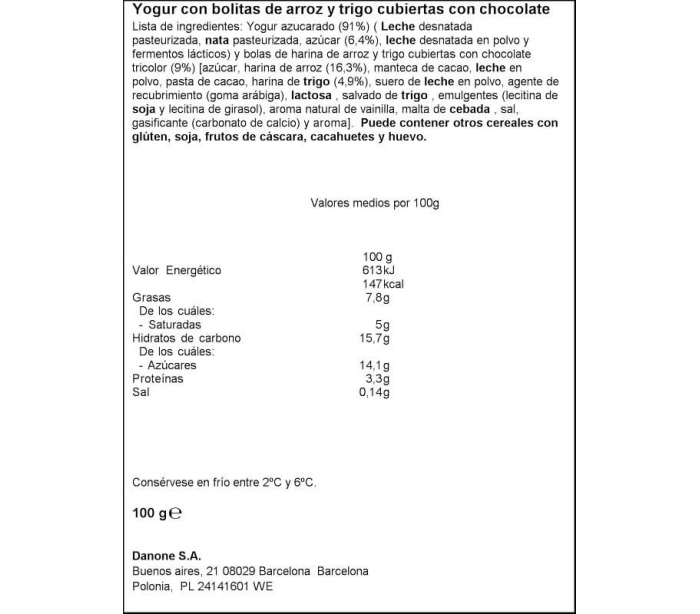 YOGUR C/BOLAS CRUNCHY CHOCOLATE DANONE 100 GR.